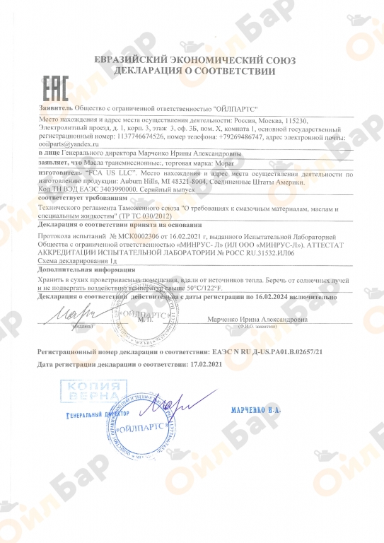 Синтетическое всесезонное моторное масло для бензиновых двигателей автомобилей Chrysler, Jeep, Dodge. Высококачественные присадки позволяют увеличить межсервисные интервалы замены согласно рекомендациям автопроизводителей. Обладает превосходной способностью запуска при низких температурах. Служит заменой 04761851AD
